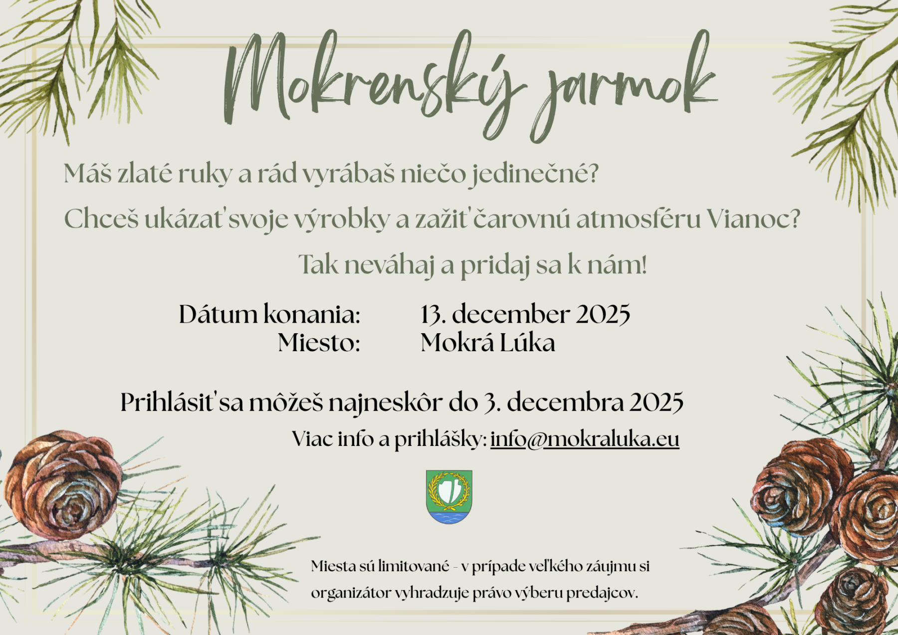 Prihláška na jarmokVeľkosť a typ súboru 162 KB / PDFStiahnuť príloha 1 – dieloVeľkosť a typ súboru 118 KB / PDFStiahnuť príloha 2 – pestovateľVeľkosť a typ súboru 117 KB / PDFStiahnuť príloha 3 – pokladňaVeľkosť a typ súboru 171 KB / PDFStiahnuť